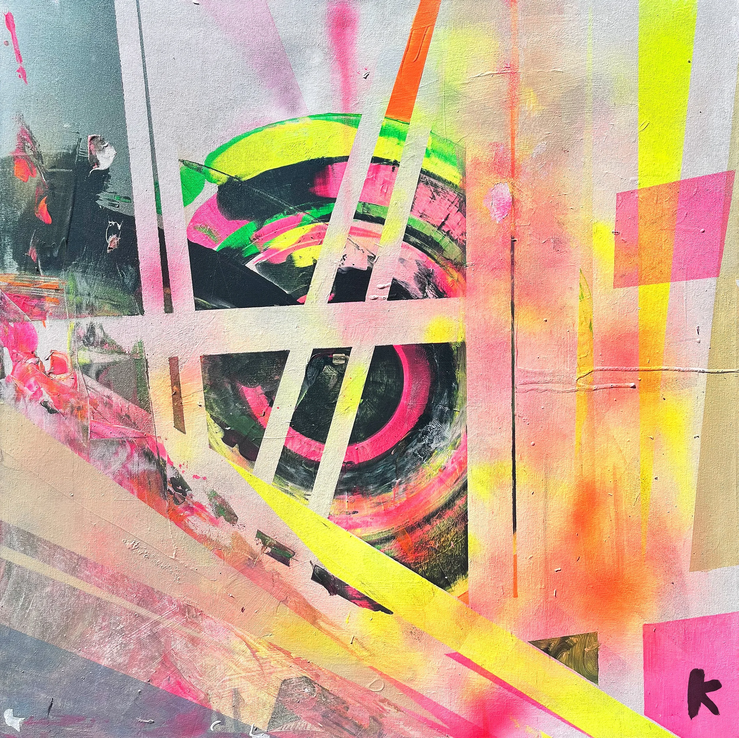 Crossing shows the limits we face with every choice. It expresses the push and pull between chaos and hope through honest, rough marks. Layers of acrylic and spray paint add texture and depth, mixing disorder with control. This artwork doesn’t just fill space—it wakes it up, sending strong emotions and light that demand attention. The neon colors and textured layers boldly celebrate flaws, strength, and the powerful energy of making decisions.